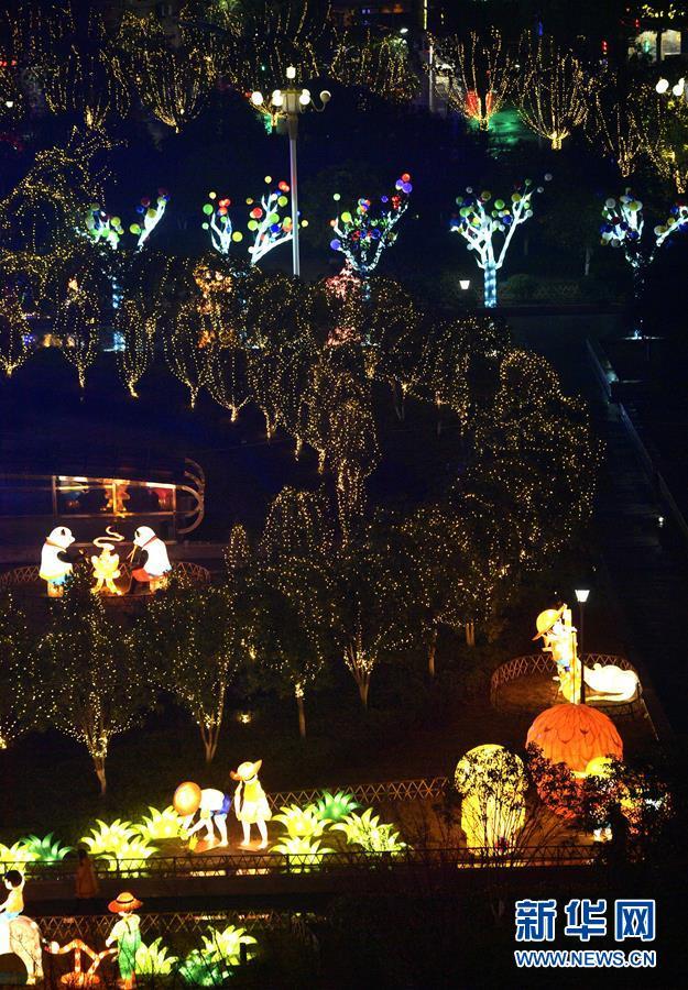2月17日晚在湖北省恩施土家族苗族自治州宣恩县贡水河畔拍摄的彩灯。 元宵节将至,各地张灯结彩,一派喜庆热闹的节日景象。 新华社发(宋文 摄)