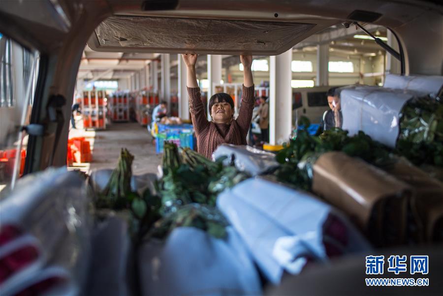 这是2月12日在中国云南昆明斗南花卉市场装车运输的玫瑰花。 新华社记者 江文耀 摄