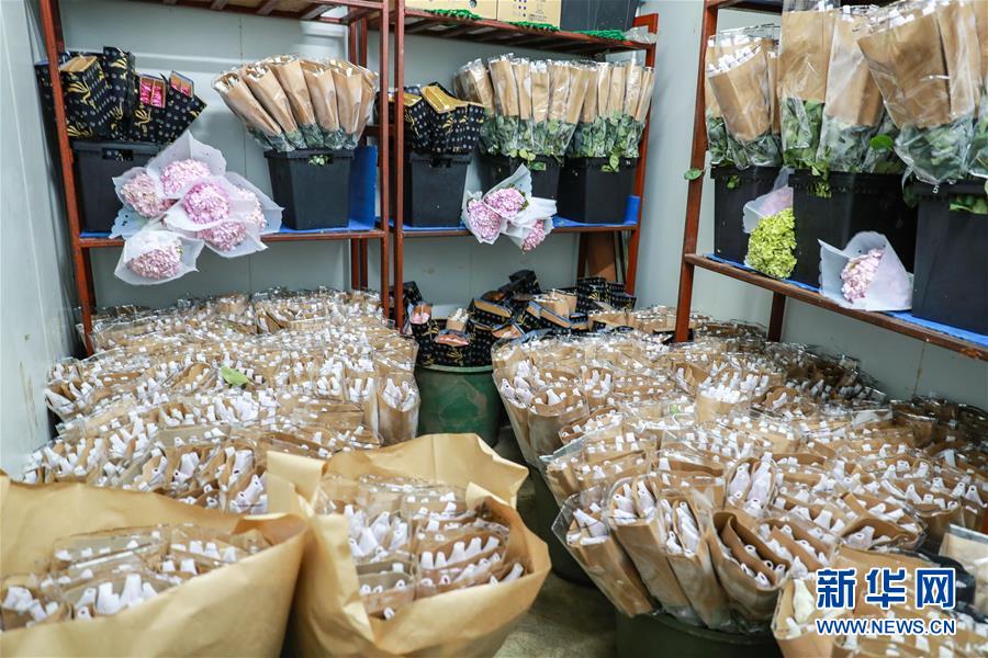 图为2月10日拍摄的曼谷锦泰花卉冷库中的云南鲜花。 新华社记者 张可任 摄