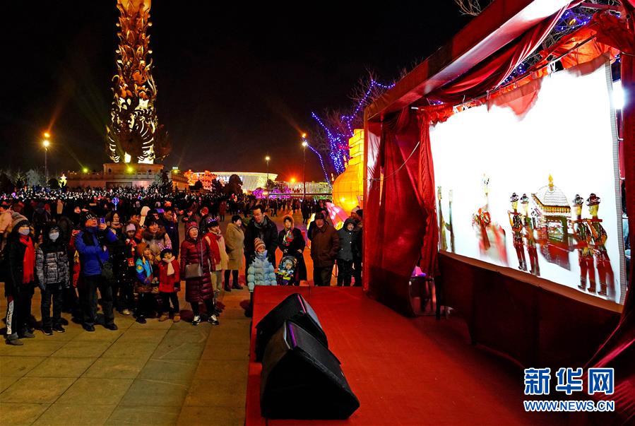 2月17日,游客在唐山市南湖公园欣赏冀东皮影。 新华社记者 杨世尧 摄