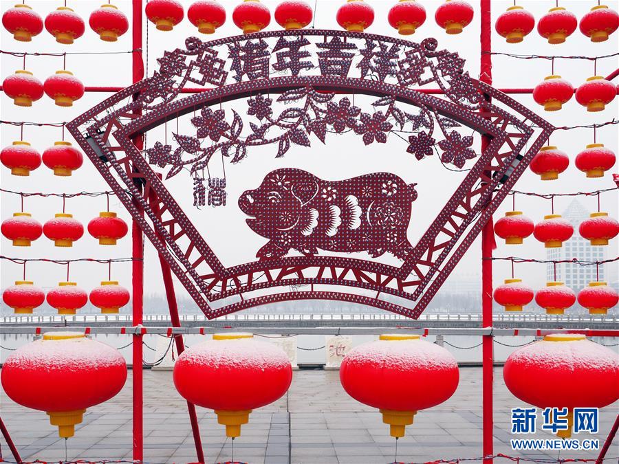 2月19日在山东省无棣县拍摄的被白雪覆盖的红灯笼。 当日是正月十五元宵节,部分地区迎来降雪。雪花覆盖在大红灯笼上,为节日增添别样情趣。 新华社发(陈子庆 摄)