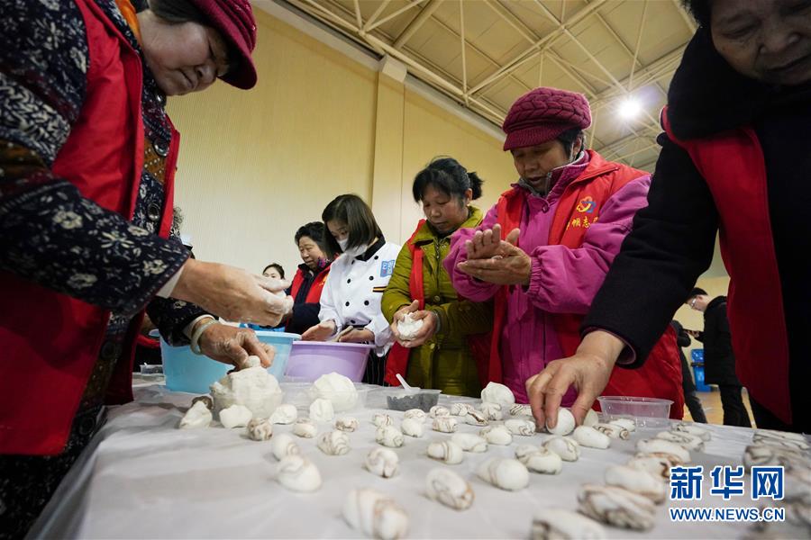 2月19日,社区居民在活动现场制作“雨花石汤圆”。新华社记者 季春鹏 摄