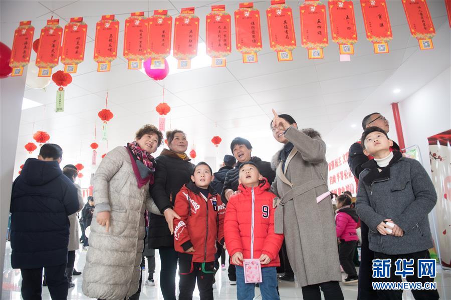2月19日,村民在浮玉社区文化礼堂猜灯谜。 新华社记者 翁忻旸 摄