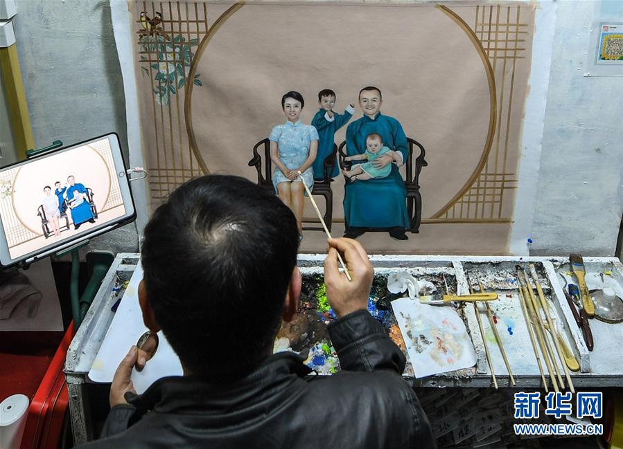 大芬村的一名画师为顾客绘制定制化作品(1月11日摄)。 新华社记者 毛思倩 摄