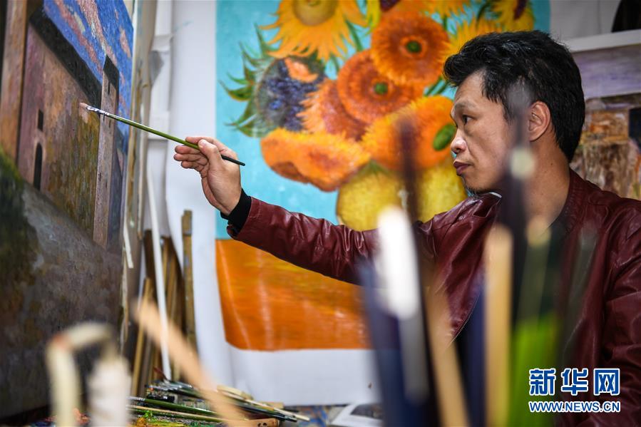 画师赵小勇在大芬村的画室里绘制自己的原创作品(1月11日摄)。 新华社记者 毛思倩 摄
