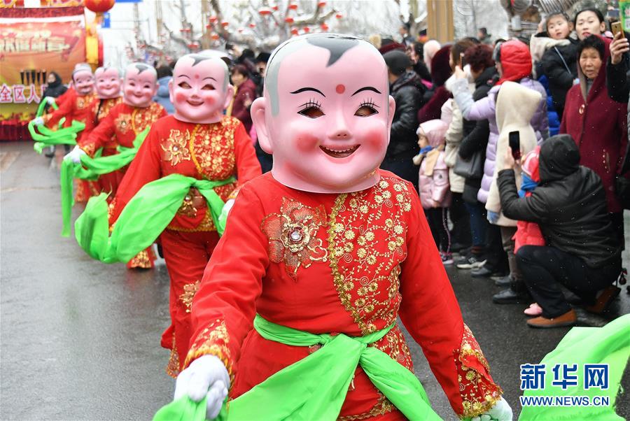 2月19日,民间艺人在山东省烟台市福山区进行民俗表演。新华社发(孙文潭 摄)
