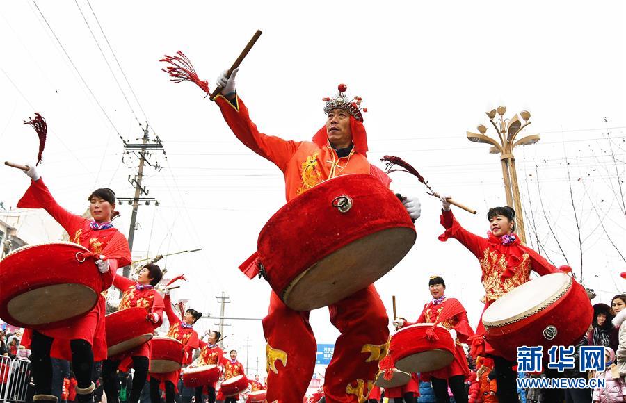 2月19日,民间艺人在山东省烟台市福山区进行民俗表演。新华社发(孙文潭 摄)