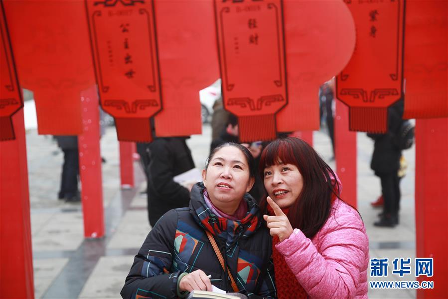 2月19日,人们在河北内丘县扁鹊广场参加猜灯谜活动。新华社发(石晓鹏 摄)