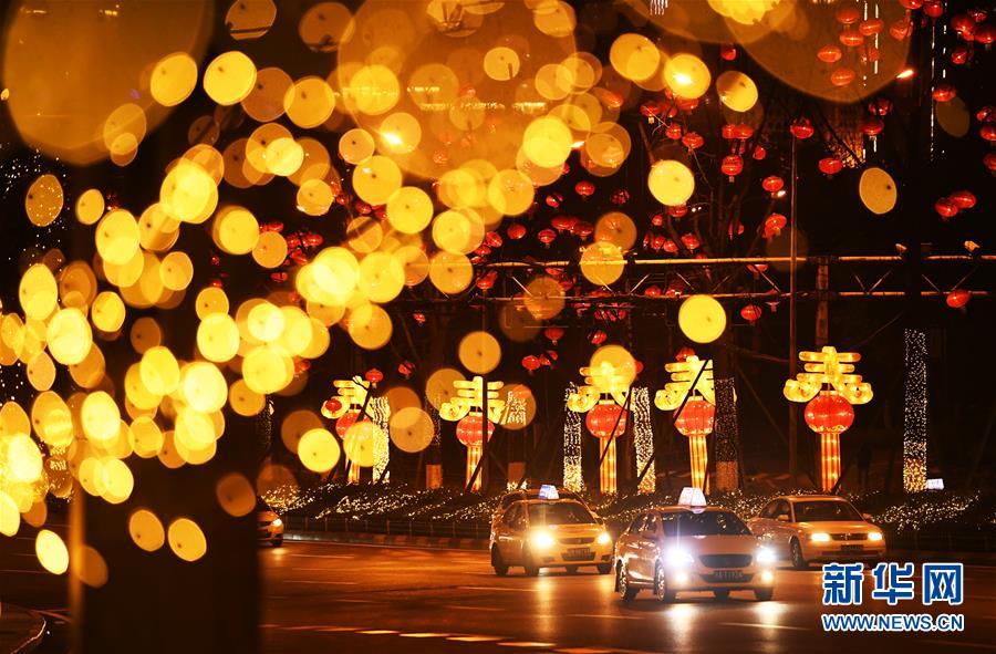 这是2月19日在重庆市南岸区江南大道一带拍摄的夜景。 新春佳节期间,重庆市区张灯结彩,营造浓浓的喜庆气氛。 新华社记者 王全超 摄