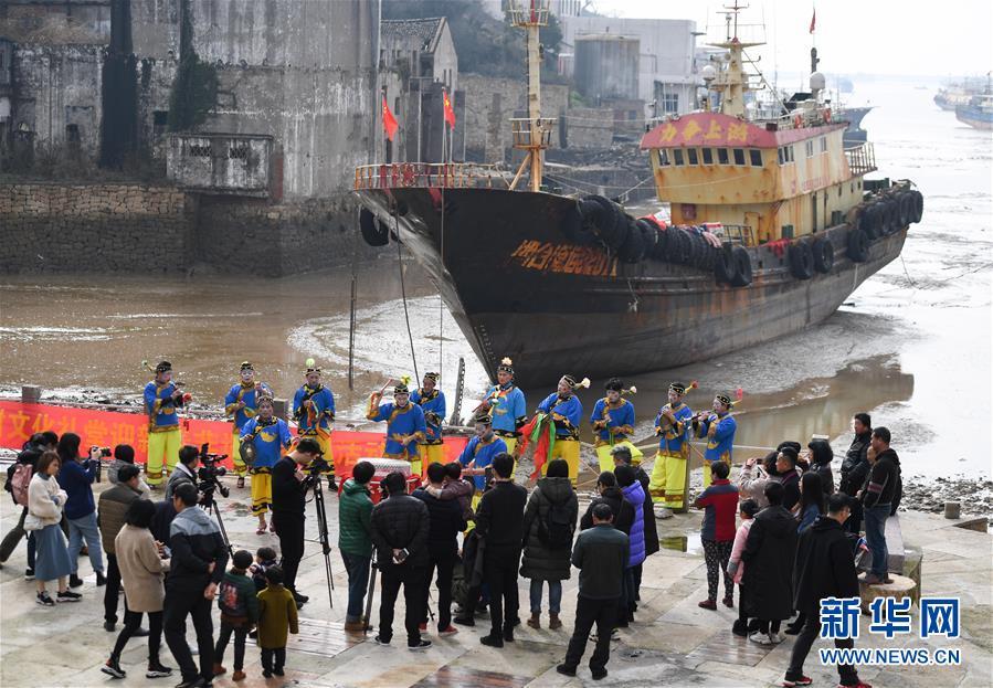 2月19日,中国舞协非遗传统舞蹈影像采集项目工作组在浙江省温岭市石塘镇里箬村采集拍摄大奏鼓表演。 新华社记者陈晔华摄