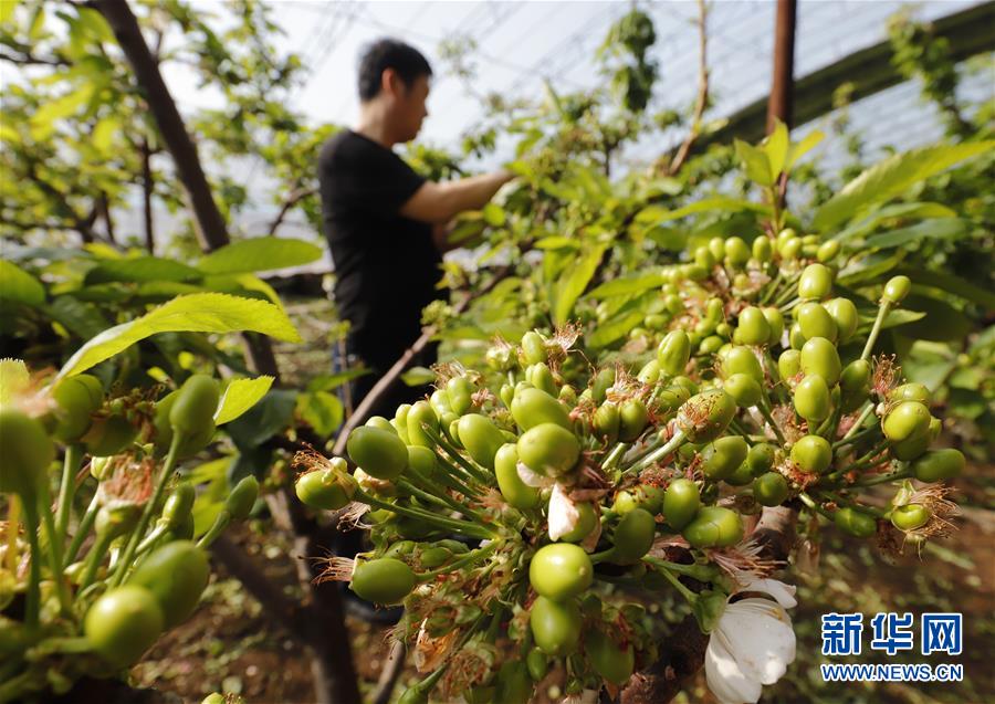 2月20日,河北唐山市玉田县杨家套镇东高桥村农民在樱桃大棚里劳作。 新华社发(刘满仓 摄)