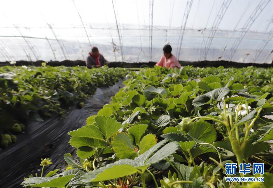 2月20日,河北唐山市玉田县杨家套镇东高桥村农民在草莓大棚里劳作。 新华社发(刘满仓 摄)