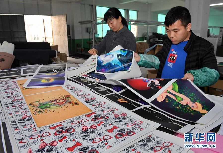 2月20日,莆田一家电子商务有限公司的工人在设计外销个性化定制箱包。