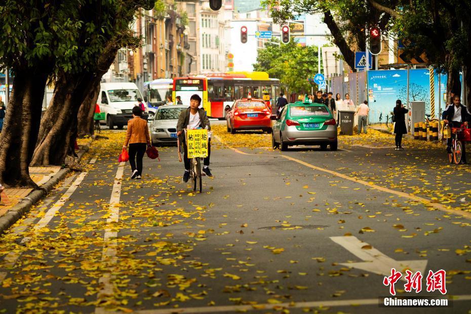 2月21日下午,一场春雨打落满地黄叶,广州呈现出一派“秋天”的景色。广州老城区大量种植的大叶榕,通常会在春天发新叶芽前落叶。因此,每年广州的春天反而呈现秋色。中新社记者 柯小军 摄