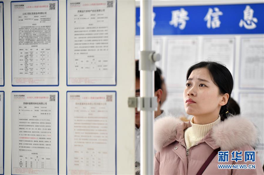 2月22日,在位于济南市的山东省人力资源市场,一名求职者在查看招聘信息。 当日,山东省人力资源市场举行人才招聘会,吸引了众多求职者前来应聘。 新华社记者郭绪雷摄