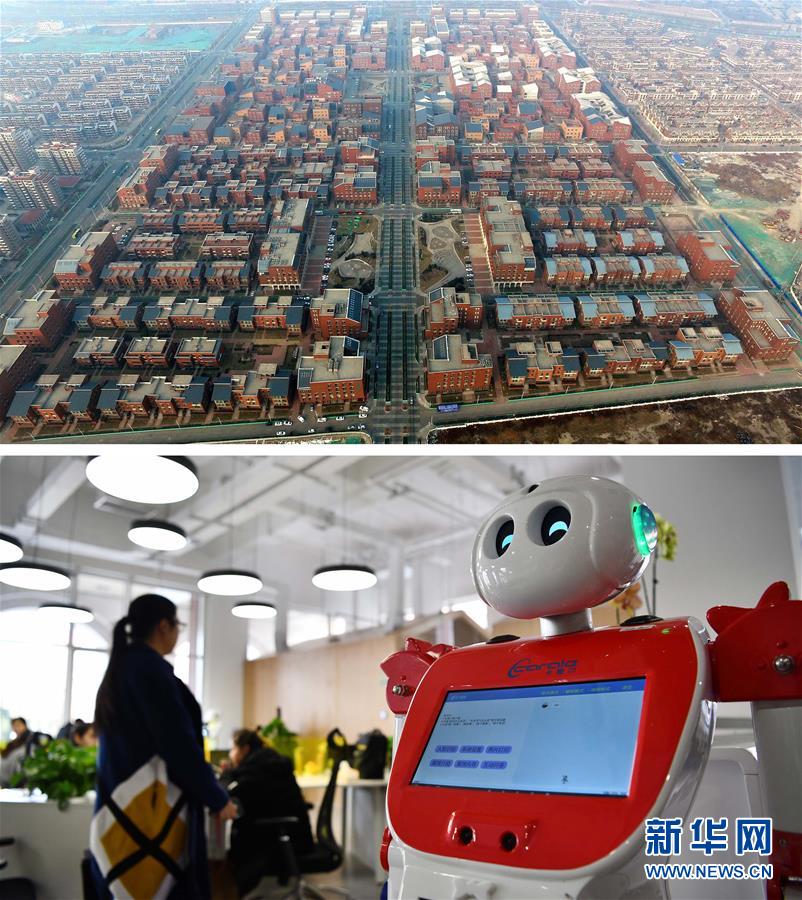 拼版照片:上图是2017年2月15日拍摄的天津滨海—中关村科技园(新华社记者岳月伟摄);下图是2019年1月29日拍摄的天津滨海-中关村科技园内天津卡雷尔机器人有限公司研发的智能机器人(新华社记者李然摄)。 今年是京津冀协同发展5周年。5年来,雄安新区和北京城市副中心规划建设有序推进,北京非首都功能疏解积极稳妥开展,交通、生态、产业等重点领域实现率先突破。 新华社发