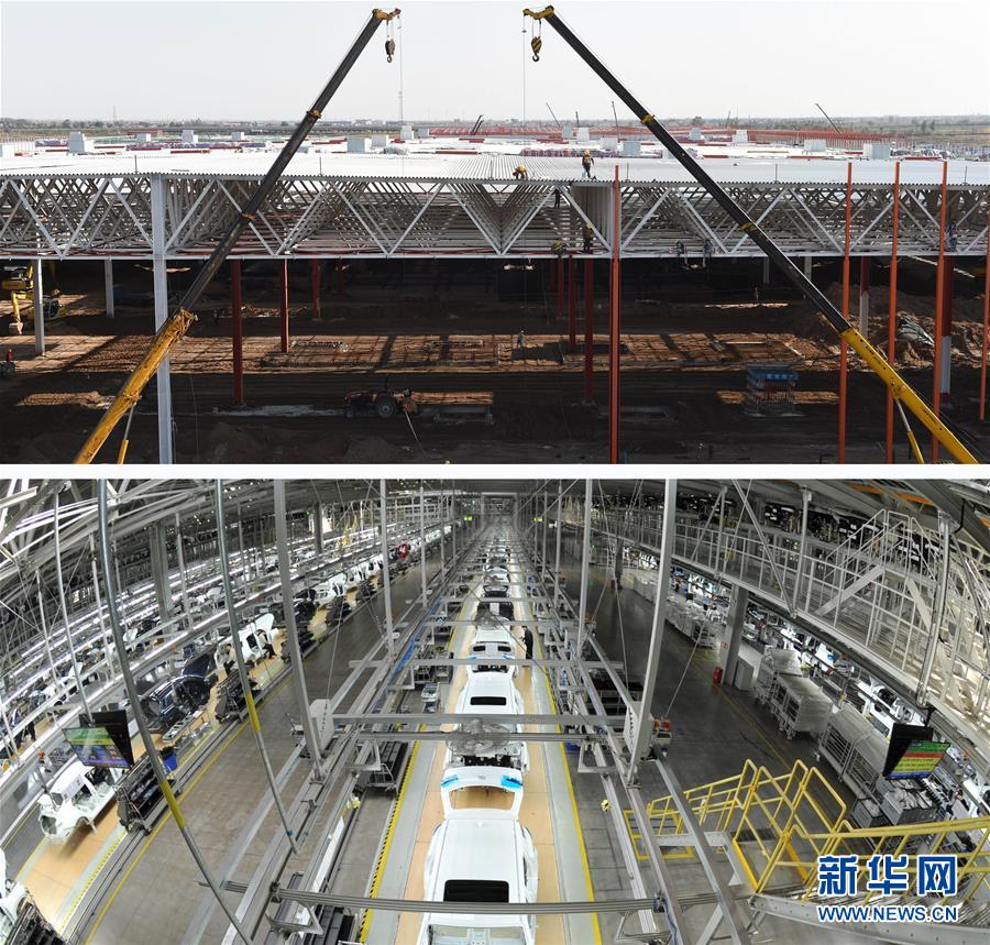 拼版照片:上图为2015年10月29日拍摄的正在建设中的北京现代沧州工厂;下图为2019年1月25日拍摄的北京现代沧州工厂总装车间。 今年是京津冀协同发展5周年。5年来,雄安新区和北京城市副中心规划建设有序推进,北京非首都功能疏解积极稳妥开展,交通、生态、产业等重点领域实现率先突破。 新华社记者 朱旭东 摄