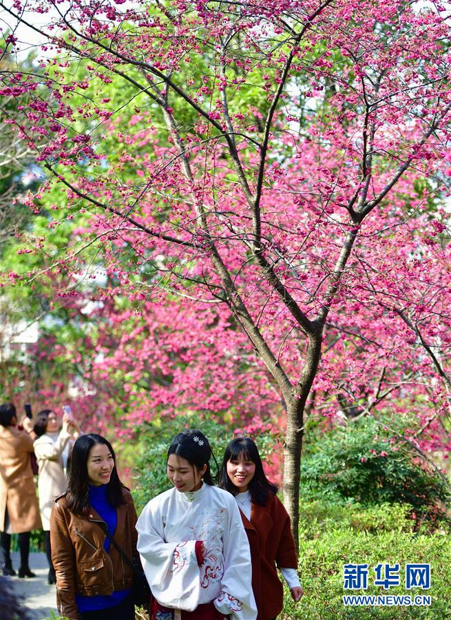2月22日,在福州市乌山风景区里,市民和游客在赏花观景。 近日,福建省福州市春光明媚,花红柳绿,一派生机勃勃的初春景象。 新华社记者魏培全摄