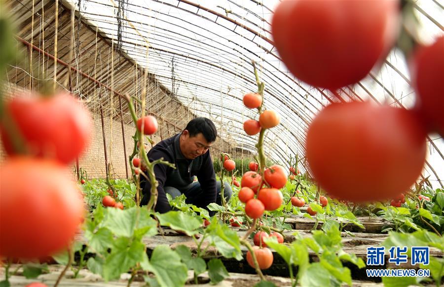 2月22日,甘肃省敦煌市月牙泉镇兰州村农民在温室大棚中劳作。 新华社发(张晓亮 摄)
