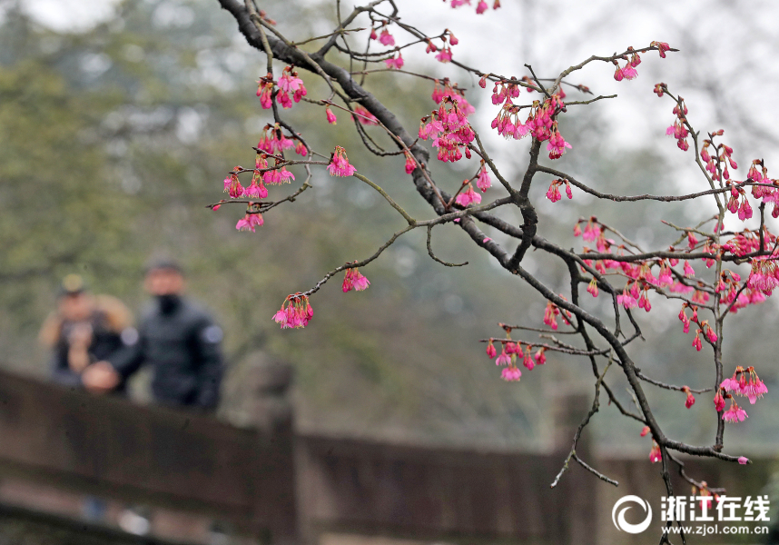 2月22日,杭州雨水暂停,西湖边柳枝抽出嫩芽,山樱悄悄绽放,春色初现。(浙江在线记者 林云龙 摄)