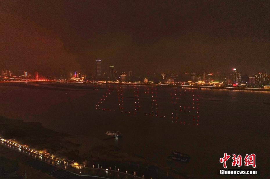 2月22日晚,江西南昌红谷滩新区秋水广场,由百余架无人机组成的编队上演了一场“灯光秀”。图为无人机编队组成的“2019”字样。中新社记者 刘占昆 摄