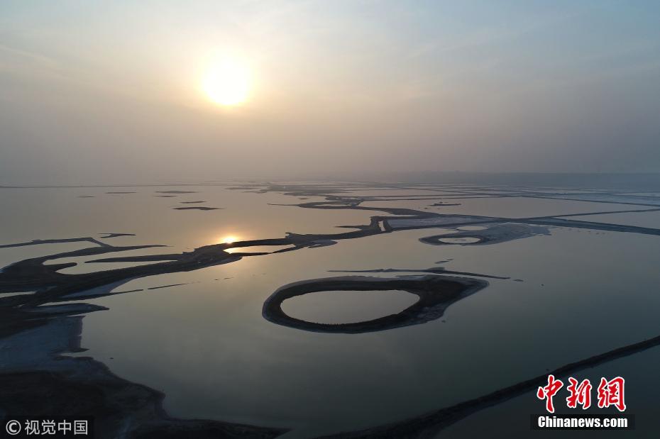 2月22日,山西运城,航拍春日的盐池。少了冬季的朦胧,春意盎然,空中俯瞰,非常美丽。黄文鹏 摄 图片来源:视觉中国