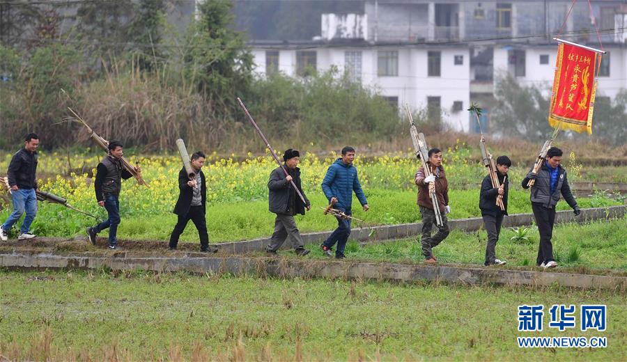 在广西融水苗族自治县香粉乡,苗族群众在赶“十六古龙坡会”(2月20日摄)。新华社记者黄孝邦摄