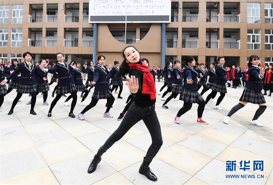 2月25日,贵州省贵阳市南明区甲秀高中的师生在开学主题活动上表演“快闪”节目《我和我的祖国》。 当日是我国部分地区的开学第一天,学生们在丰富多彩的活动中迎接新学期的到来。 新华社发(赵松 摄)