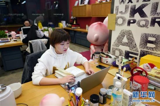 2月21日,张世玉(前)在位于北京光华路SOHO的公司工作。 新华社记者 鞠焕宗 摄