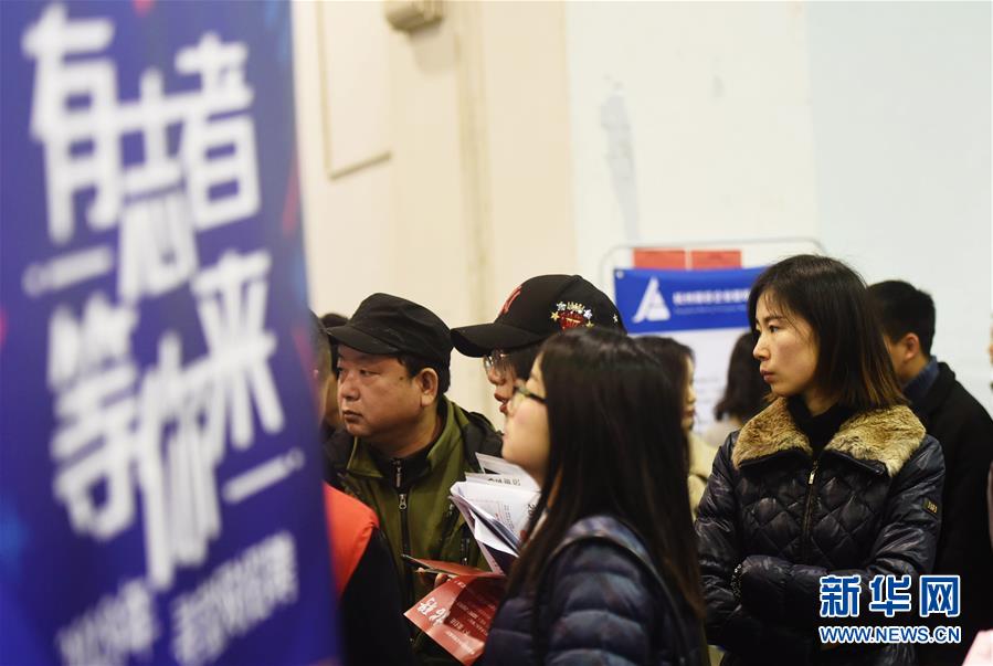 2月26日,求职者在杭州市(新春)人才交流大会上寻找工作岗位。 当日,2019年杭州市(新春)人才交流大会举行,800余家企事业单位参加,吸引众多求职者前来应聘。 新华社发(龙巍 摄)