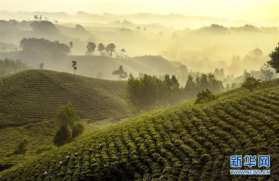 茶农在河南省信阳市浉河区的生态观光茶园采摘茶叶(2018年4月28日摄)。 新华社记者 陶明 摄