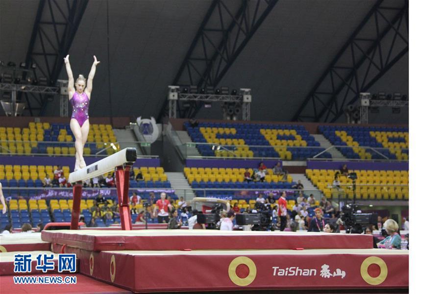 多哈体操世锦赛上使用的平衡木器械(资料照片)。新华社发