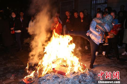 2月27日,农历正月二十三,甘肃平凉民众欢度春节最后一项传统节庆习俗“燎疳节”。 郑兵 摄