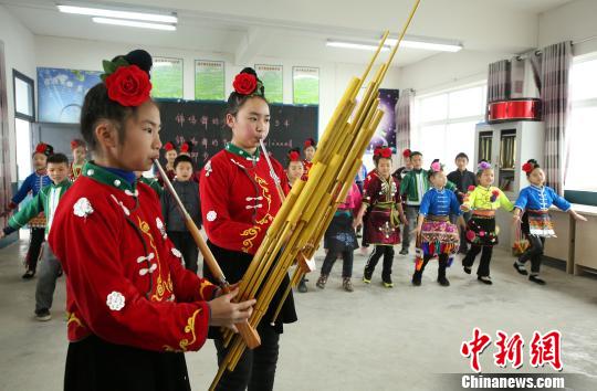图为兴趣班的学生在吹奏芦笙。 黄晓海 摄