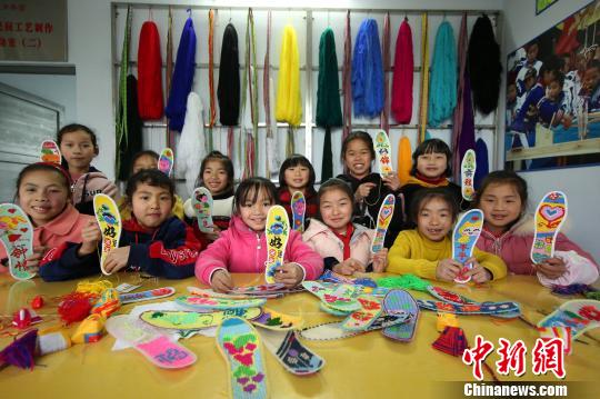 图为兴趣班学生在展示自己的刺绣作品。 黄晓海 摄