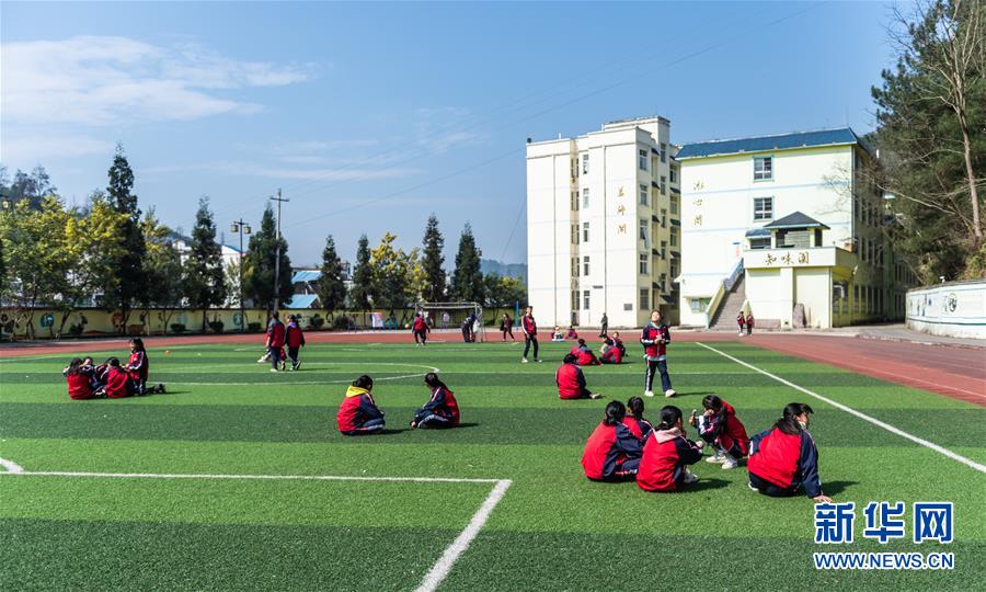 2月28日,六盘水六枝特区月亮河乡第一中学的学生在操场上休憩。 新华社记者 陶亮 摄