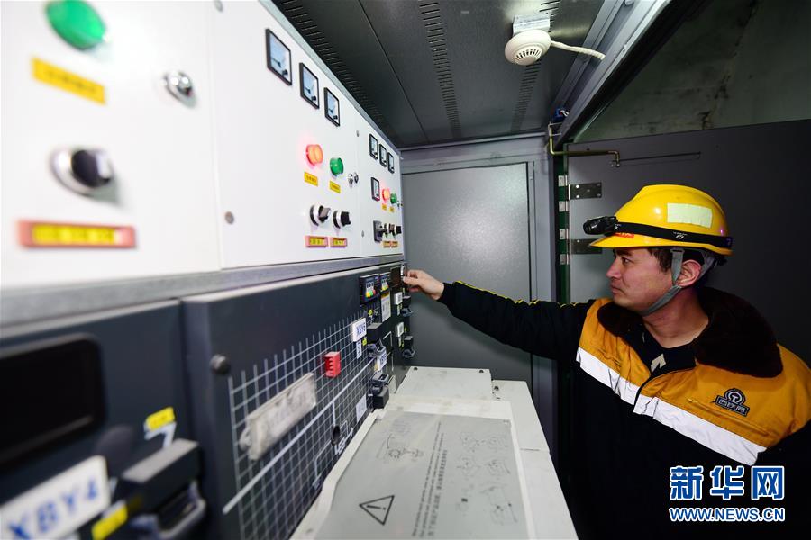 2月28日凌晨,西安供电段鄠邑供电车间电力工孙鹏涛在西成高铁纸坊一号隧道对电力设备进行检修。 新华社记者 李一博 摄