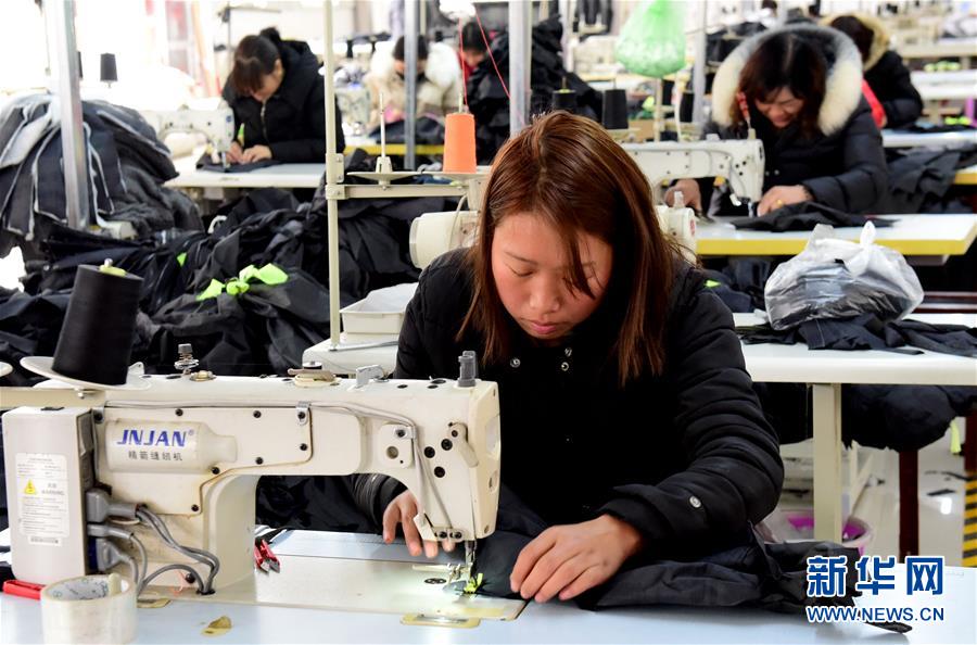 2月28日,工人在河南省汝阳县刘店镇一家服装厂扶贫车间工作。 近年来,地处山区的河南省汝阳县加大特色种植养殖产业、扶贫车间、村级光伏电站建设,引导贫困人员走进基地和车间务工,实现在家门口就业,拓宽农民增收渠道,助力精准脱贫。 新华社记者朱祥摄