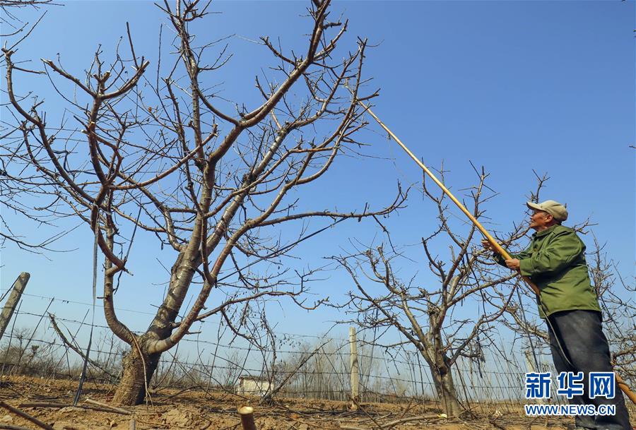 2月28日,农民在河北省唐山市丰润区沙流河镇大张屯村樱桃树果园进行剪枝。 新华社发(刘满仓 摄)