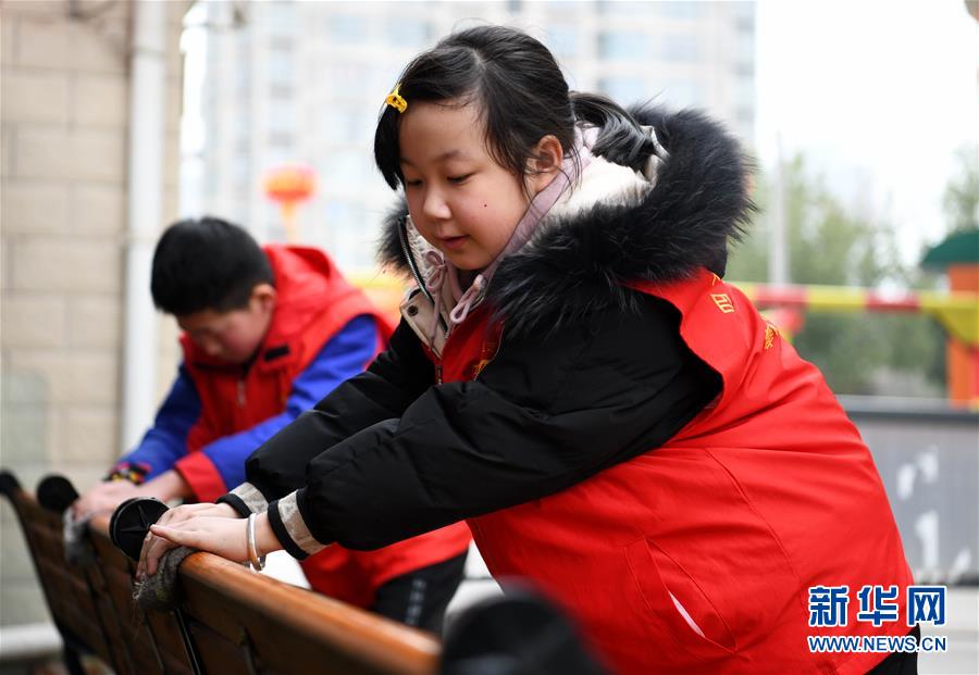3月3日,安徽省肥西县上派镇四十埠社区举办“学雷锋 在行动”志愿服务活动,这是上派镇四十埠社区小志愿者在清洁社区公共设施。