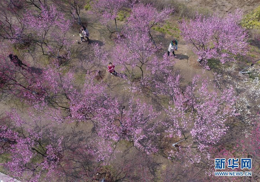 3月3日,游人在湖北襄阳市高新区一处公园游玩(无人机拍摄)。 新华社发(杨东 摄)