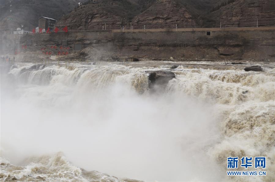 这是3月3日拍摄的黄河壶口瀑布。近日,随着气温回暖,受上游融冰开河速度加快影响,黄河壶口瀑布水量增大,气势磅礴。 新华社发(苏强 摄)