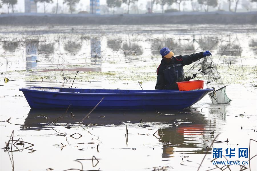 3月4日,江苏省淮安市洪泽区东双沟镇养殖户在采收小龙虾。 初春时节,江苏省淮安市洪泽区东双沟镇藕虾套养的小龙虾喜获丰收,养殖户们忙着采收和分拣,准备投放市场。 新华社发(万震 摄)