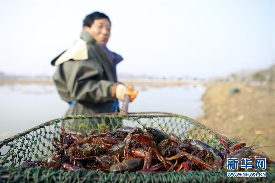 3月4日,江苏省淮安市洪泽区东双沟镇养殖户在采收小龙虾。 初春时节,江苏省淮安市洪泽区东双沟镇藕虾套养的小龙虾喜获丰收,养殖户们忙着采收和分拣,准备投放市场。 新华社发(万震 摄)