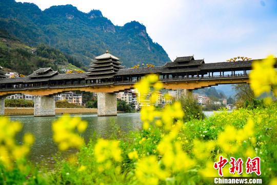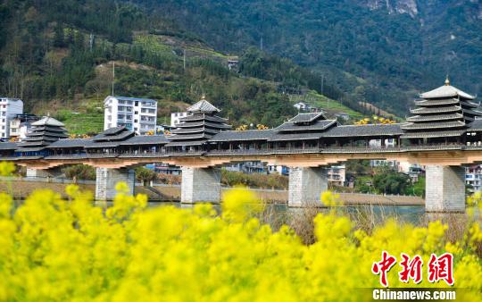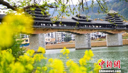 阳春三月,广西龙胜各族自治县处处春意盎然,簇拥绽放的油菜花把当地的特色民族风雨桥装点成了一幅美丽的春天画卷,别有一番诗意。
