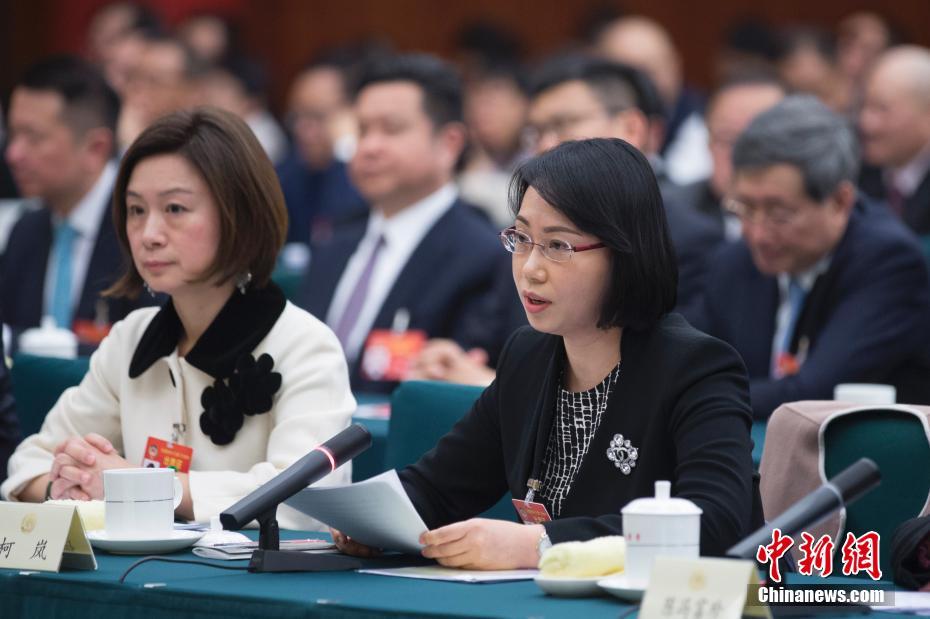 3月4日,参加全国政协十三届二次会议的港澳地区政协委员举行联组会。图为全国政协委员柯岚在会上发言。中新社记者 王骏 摄