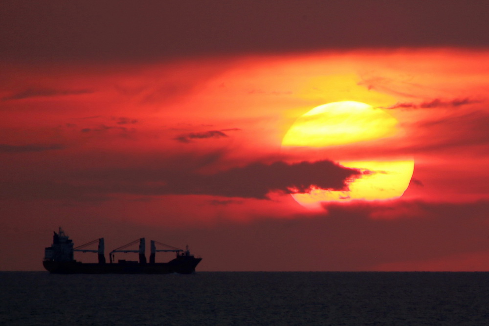 过赤道前印度洋上的晚霞(3月3日摄)。
