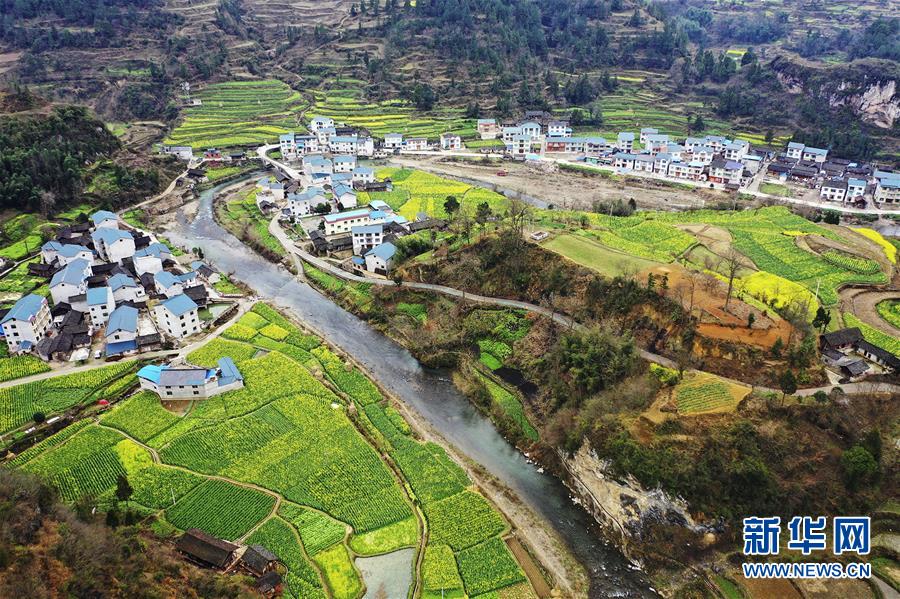 这是3月5日无人机拍摄的贵州省遵义市余庆县白泥镇民同村。初春时节,贵州各地风光旖旎,美丽乡村风景如画。新华社发(穆明飞 摄)