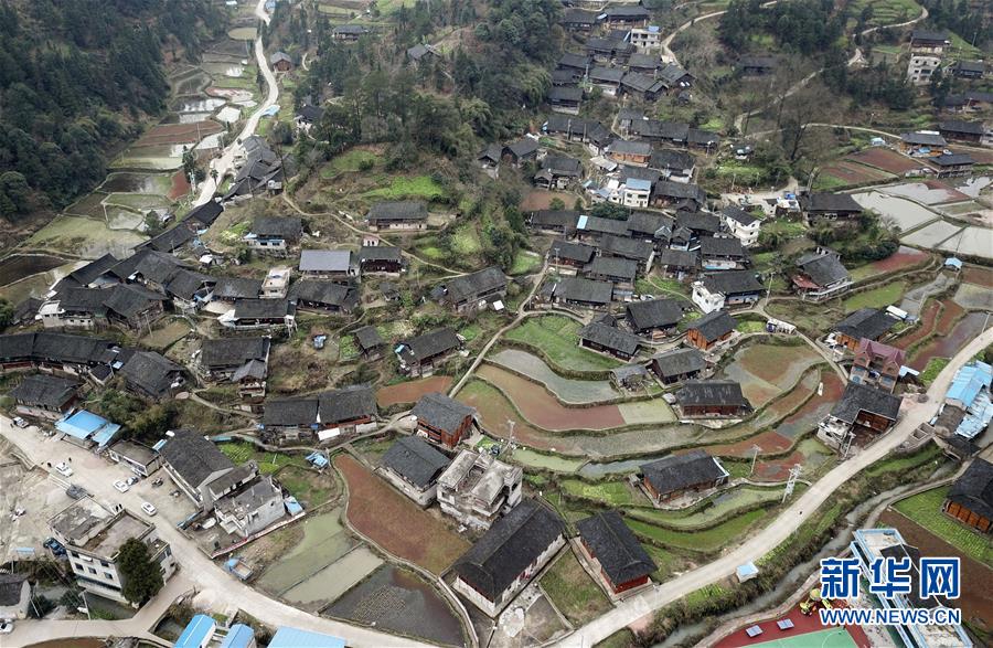 这是贵州省台江县台盘乡红光村的乡村景色(3月5日无人机拍摄)。初春时节,贵州各地风光旖旎,美丽乡村风景如画。新华社发(蔡兴文 摄)
