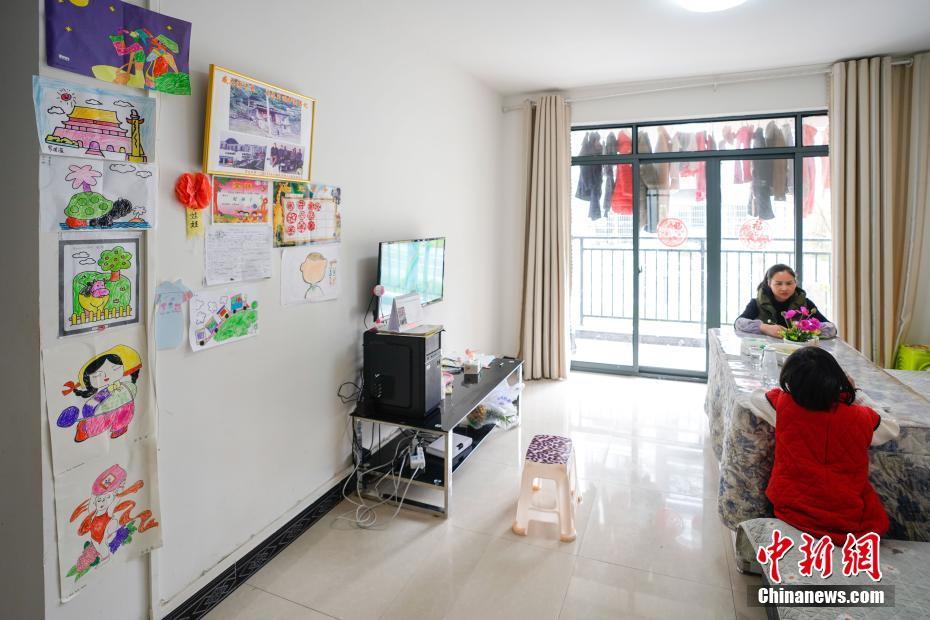 3月5日,搬迁户陆祖连在新居的整洁明亮的客厅里和刚开学的孩子交流。2015年12月,贵州省启动大规模易地扶贫搬迁工作,规划在“十三五”期间,对188万“一方水土难养一方人”的山区民众实施易地搬迁,其中搬迁建档立卡贫困人口150万,占全国搬迁计划的15%。截至2019年2月10日,贵州易地扶贫搬迁已入住132万人,剩下的56万人也将在2019年上半年全部完成搬迁入住。中新社记者 贺俊怡 摄